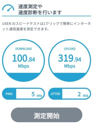 Androidの設定でWiFiが「接続済」になってることを確認し通信速度テストすると、
